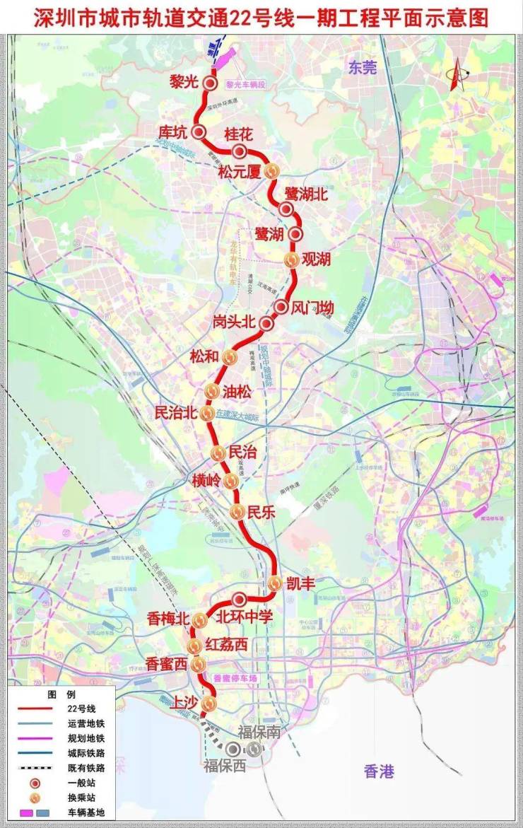 22号线一期 工程起于上沙站 ,途经福田区、龙岗区、龙华区,终至黎光站 ,线路全长 34.7 公里。