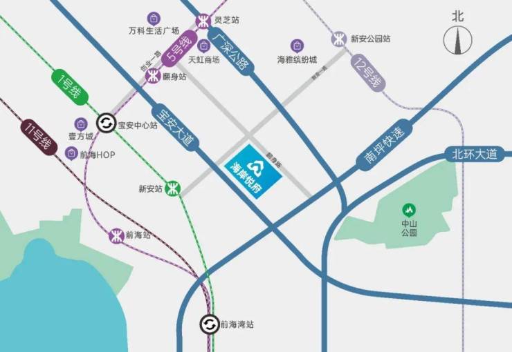 海岸悦府位于深圳市宝安区新安街道翻身路与新乐路交汇处,项目与海乐华府、天健和郡府、庆宜华苑等人才房并称为“翻身四杰”。