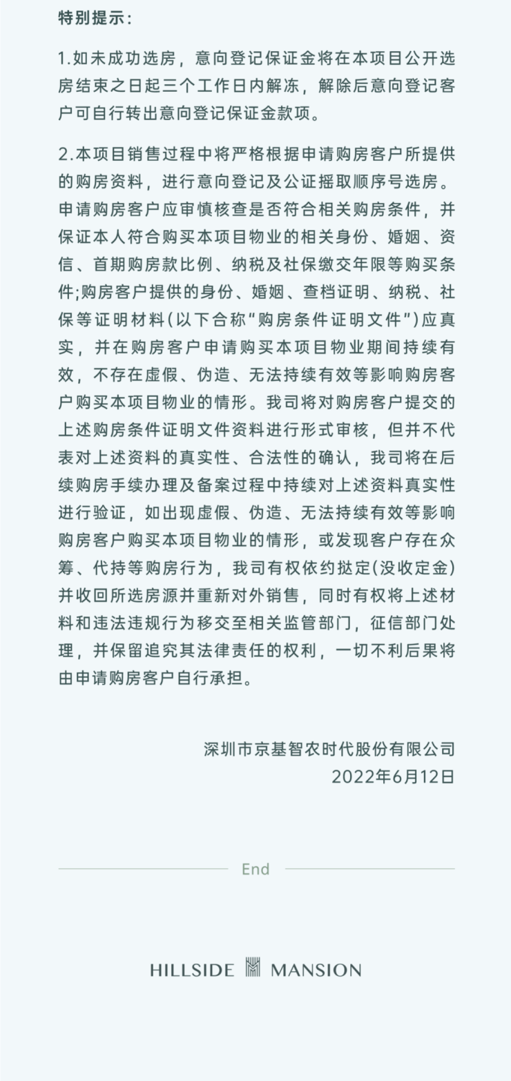 6月12日,宝安京基智农山海公馆意向登记人名册公示。