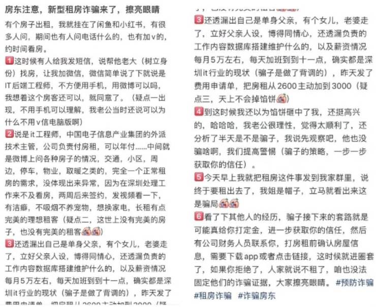 整个过程的关键在于房东的防骗意识,稍有不慎就可能落入骗子的陷阱。