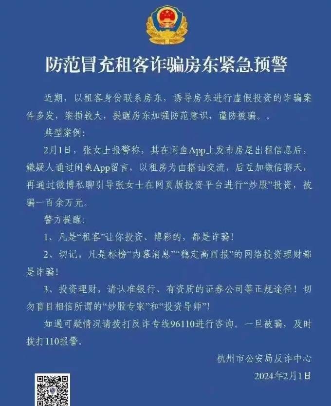 这些骗局往往披着"高额投资"的外衣,利用房东对"优质租客"的期待心理,实施精准诈骗。