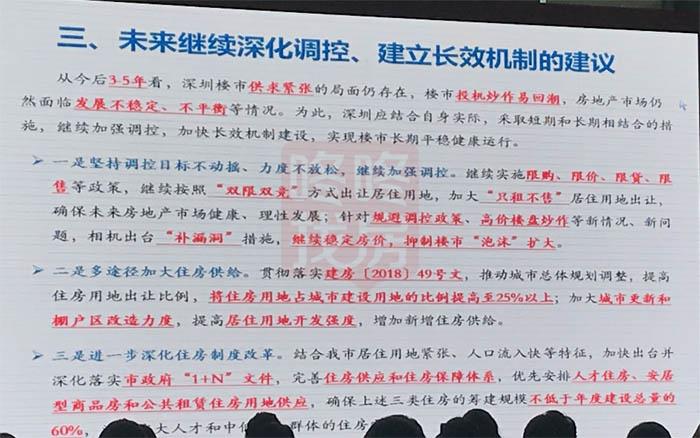 一是坚持调控目标不动摇、力度不放松,继续加强调控。在国家金融、税收、立法,特别是房产税手段还没有出台时,还没有对房地产市场进行有效稳定的情况下,深圳还是要继续坚持限购、限价、限贷、限售政策,对土地出让要坚持“双限双竞”方式,同时加大只租不售居住用地的出让,发展租赁市场。对于房地产市场规避调控政策、高价楼盘炒作等新情况、新问题,相机出台“补漏洞”措施。这次的“新四条”不是说我们的调控政策就没有了,房地产市场以后如果出现新问题,比如现在租赁市场出现了很多乱象,一样要加强调控。