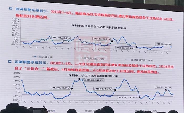【王锋】:今天跟大家分享关于深圳房地产市场形势与长效机制建设,这两个东西是目前国家对于房地产市场关注的焦点,今年以来,全国的房地产形势有一些变化,2016年10月份在一些重点城市实施调控以后,整体房地产市场形势出现了一定的稳定,特别是2017年,很多城市的房地产市场销售量出现了下降。但是2018年,最近一段时间我们看到全国的二线、三线、四线城市都出现了销售量持续增长,也出现了价格增长,特别是最近国家统计局公布的70个大中城市的指数,有些城市单月房价环比涨幅就已经达到3.7%,3.7%是个不得了的数,如果环比一个月3.7%,环比连乘下去,一年的同比涨幅可能将近40%、50%,这是一个很离谱的涨幅。