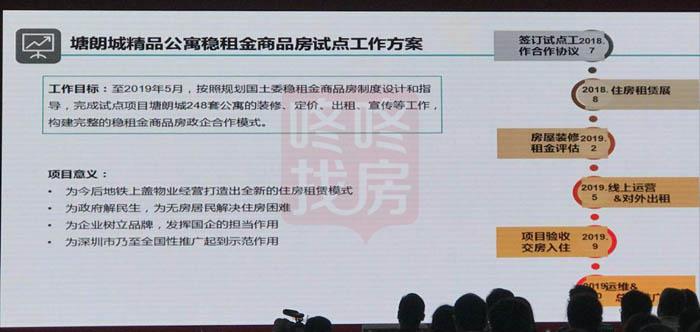 项目目前在装修阶段,预计明年3、4月份对其进行租金评估,4、5月份推出在线租房,希望通过政企合作的模式达到互惠互利的作用,特别是地铁上盖物业,除了有一部分作为保障房,我们还是希望有一些自持可以全面铺开,达到全新的住房租赁模式,因为它势必影响到周边的辐射影响,尤其是全面铺开之后对深圳市其他片区,包括对全国的推广也会起到示范作用。