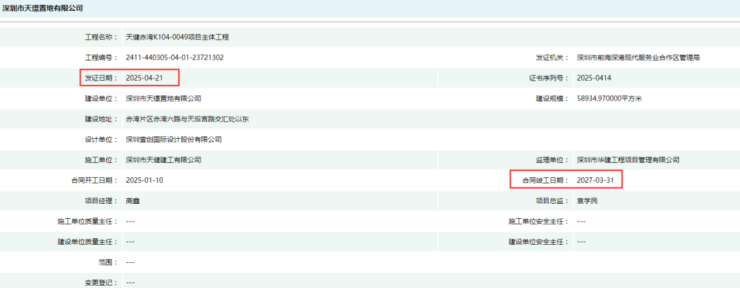项目主体工程施工许可已经公示,项目建设规模约5.9万㎡,预计2027年3月31日竣工。