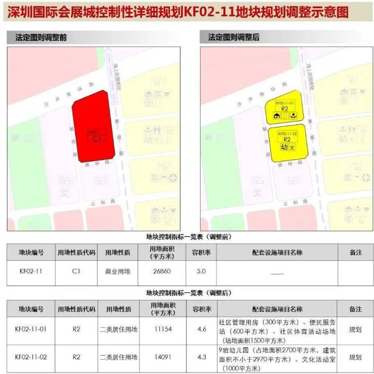 深圳国际会展城KF02-11地块,原用地性质为商业用地,用地面积为26860平方米,容积率为5.0。