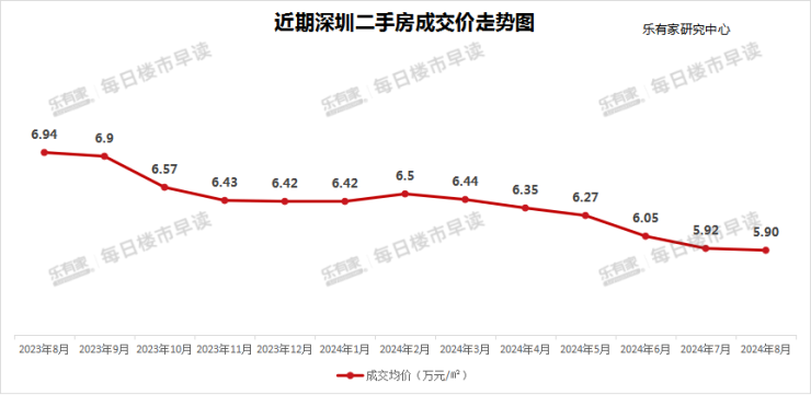 据乐有家研究中心统计,8月全市二手房平均成交价格为5.90万元/㎡,单价已连续2个月维持在“5字头”了,并且把时间线拉长的话,这一年来,房价跌了1.04万元/㎡。