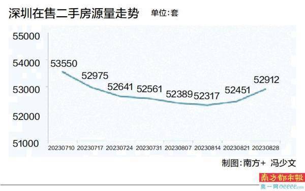 业主挂盘量方面,据深圳市房地产中介协会披露,截至8月28日全市共有52912套有效二手房源在售,较一周前增加461套。从整体趋势来看,近一个半月的挂盘量走势呈“U”字形。