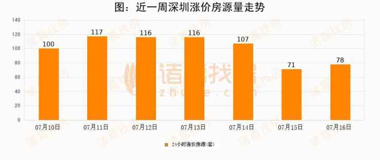 根据诸葛找房数据显示,深圳24小时涨价房源量为78套,较07月15日增加7套,环比上涨9.9%。与此同时,涨价房源占比小幅扩大,业主信心有所提升。
