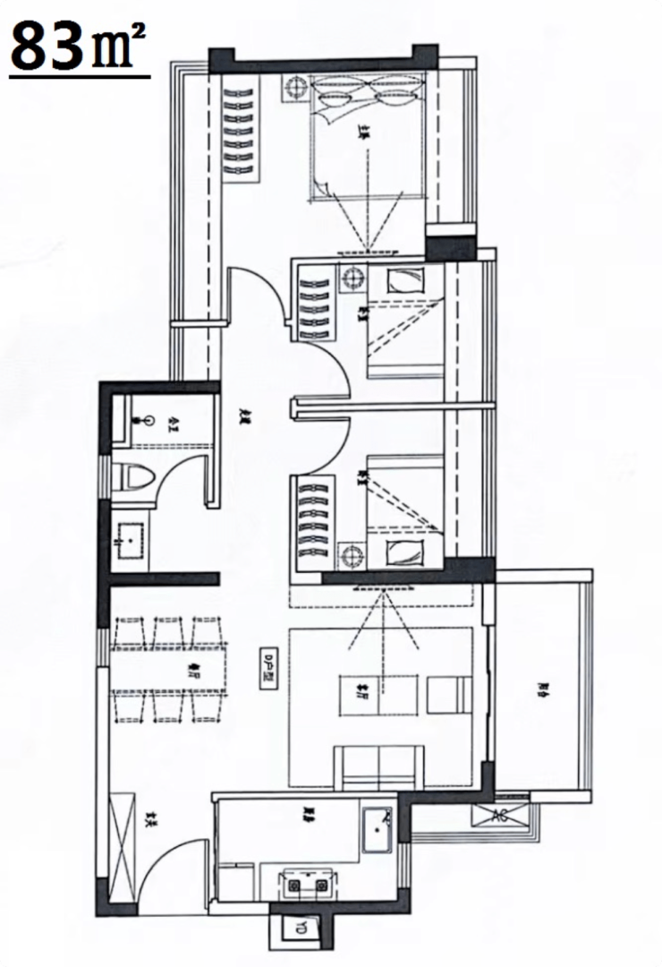 81㎡做到3房2厅1.9卫。