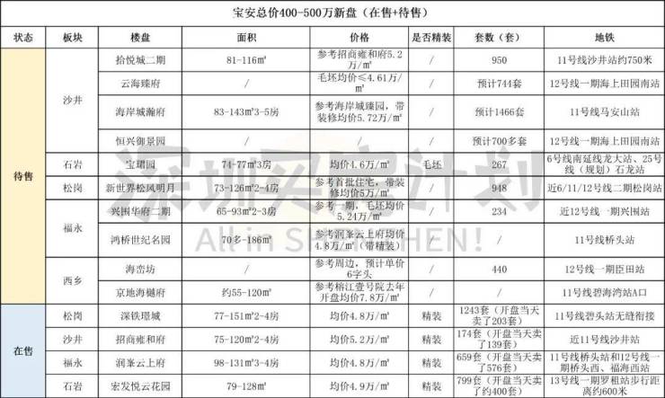 今天,为大家整理了一份400万(总价不超500万)宝安+光明买房攻略,准备在西部买房的朋友,请收好。