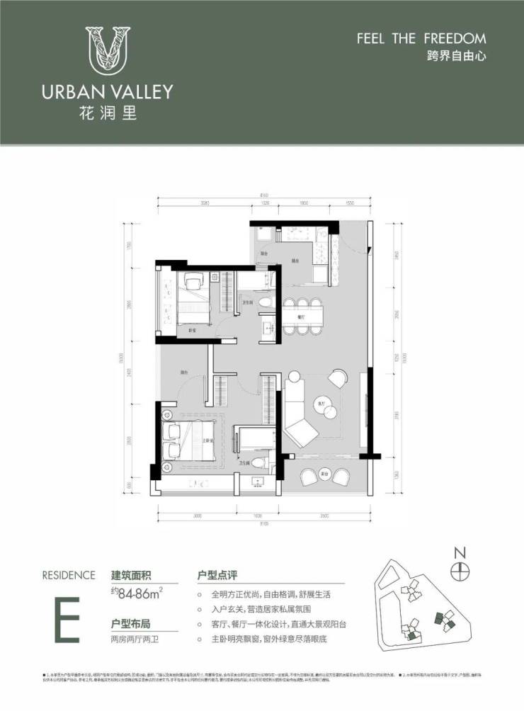 整体朝南户型占比近 90%,强调舒适性。