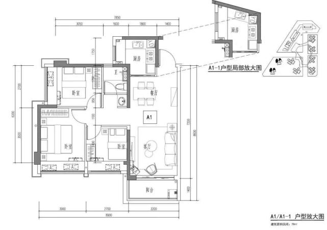 79㎡做到3房,市场稀缺,总价门槛低。