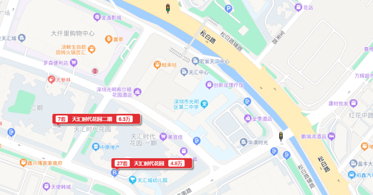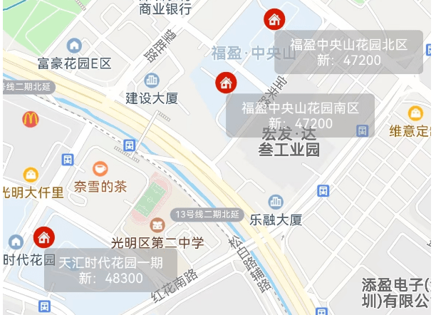 二手房方面,项目周边包括宏发天汇城一期、福盈中央山花园等次新小区,参考价在4.7-4.8万/㎡左右。