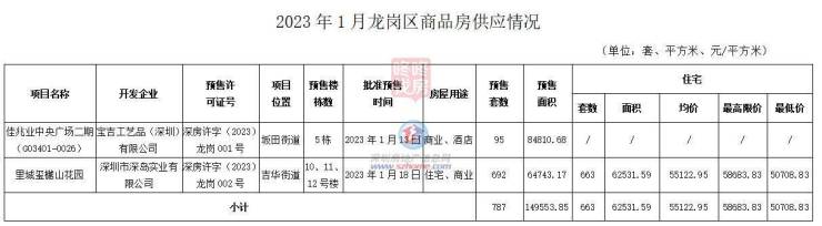 2月20日 ,龙岗住建发布了2023年1月龙岗区商品房相关情况统计。