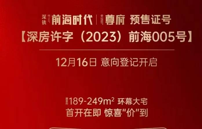 前海时代尊府270套住宅获批预售,项目将于16日起进行认筹。