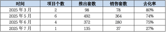 以西南某二线热点城市为例,据CRIC监测数据,2025年5-6月为该市四代宅入市高峰期,项目去化率持稳在75%,而步入7月以来,部分四代项目去化率不足3成,存在流速放缓迹象。