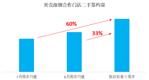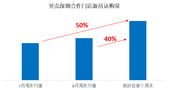 而在成交量方面,深圳贝壳研究院监测到,新政后首个周末贝壳深圳合作门店二手签约量较8月周末均值增长33%,新房则增长40%。