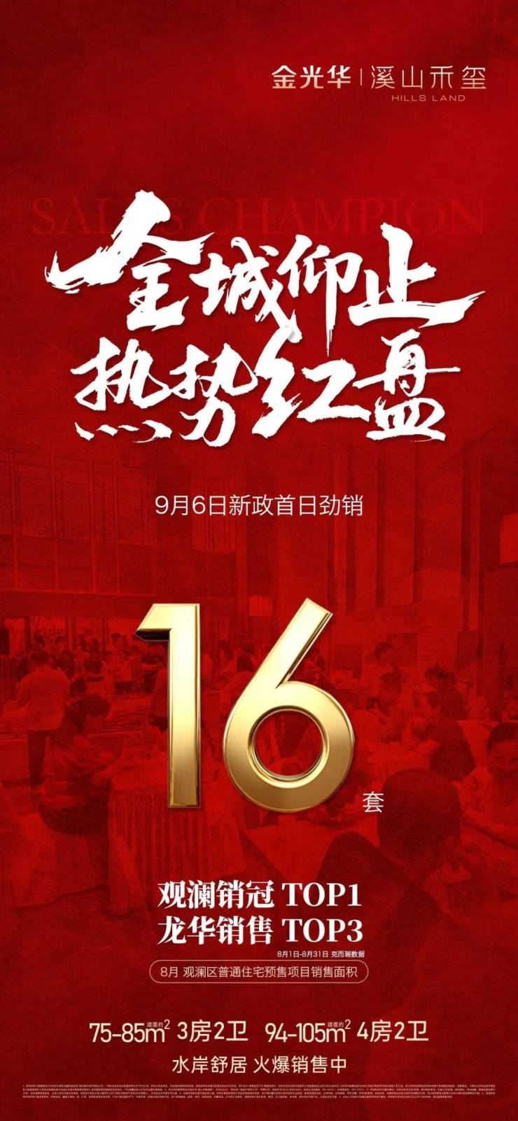 龙华金光华溪山禾玺和鸿荣源观城,新政首日也都分别热销16套;