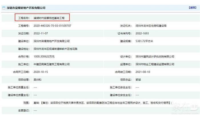 据相关资料显示,项目一期、二期已于2021年5月、9月发布实施主体公示,实施主体均为深圳市荣耀房地产开发有限公司,由深圳市物业发展(集团)股份有限公司持股69%,深圳市心海荣耀房地产开发有限公司持股30%,四川信托持股1%。深物业的股权是在通过收购而来。