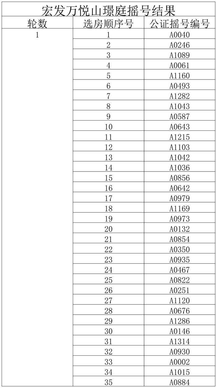 宏发万悦山二期选房顺序摇号结果出炉!
