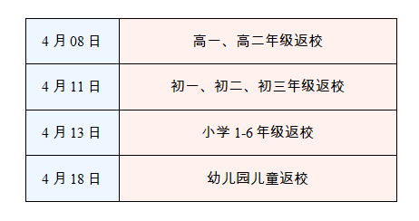 为切实保障师生员工身体健康和安全,确保龙华区2022年春季学期分级、分批返校安全,经龙华区疫情防控指挥部研究决定,龙华区返校复课时间安排如下: