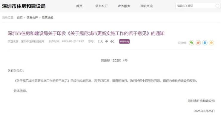 3月26日,深圳市住房和建设局印发了《关于规范城市更新实施工作的若干意见》的通知,提出了以下重点信息: