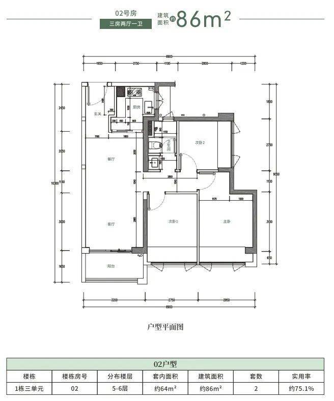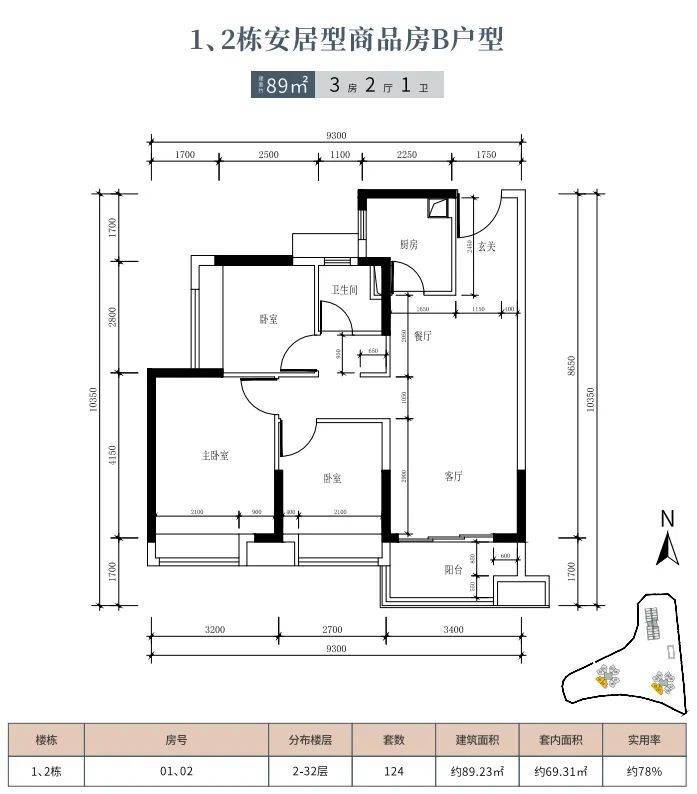 三房总价区间:197-222万/套