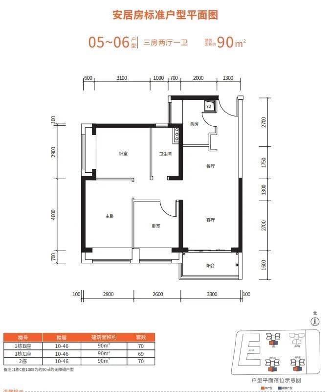 514套房中,两房占比很大,共有367套,户型建面约70㎡;三房有147套(含无障碍住房37套),户型建面约90㎡,整体的配售均价21950元/㎡,具体来看: