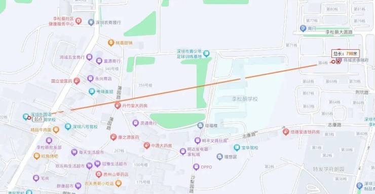 除了地铁配套之外,项目还有一个宣传的卖点是邻近深圳外国语光明校区,地图测距两者的直线距离在800米左右,但能不能划入“深外”,就得看教育局划分了。