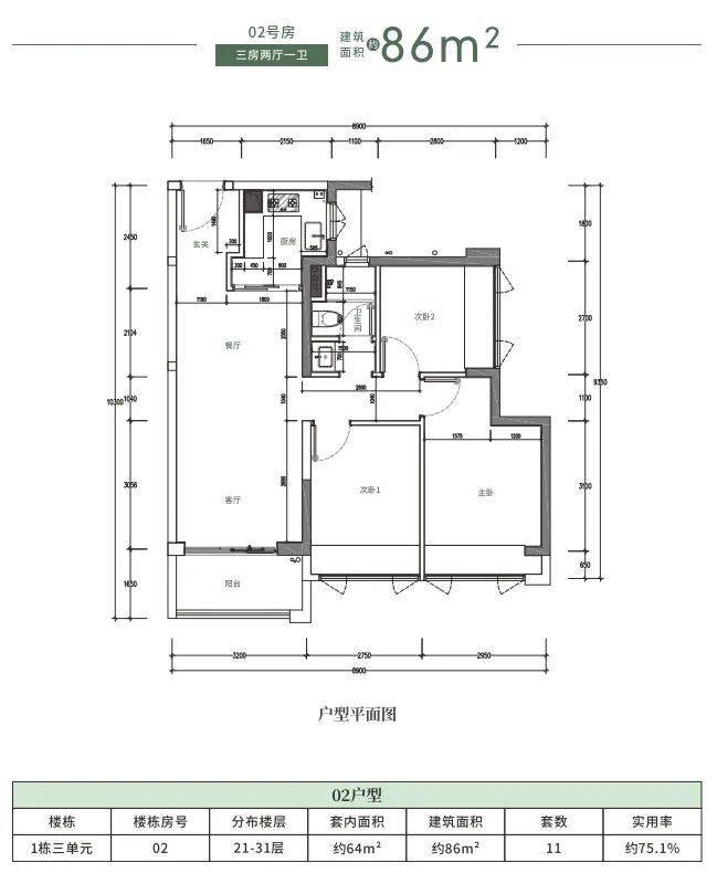 三房总价区间:193-201万/套