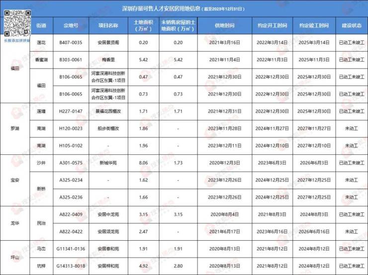根据深圳规土委公示的存量宅地清单统计,未配售的人才房项目还有14个,其中福田、罗湖、宝安各有3个,坪山有2个项目。