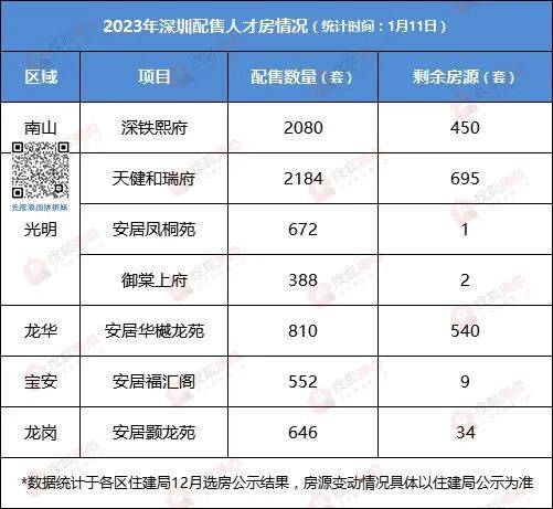 此外,2023年所推的人才房剩余房源预计也会在上半年重新配售(常态化配售),合计约1731套房源。看看下表中除了深铁熙府,还有天健和瑞府、安居华樾龙苑等项目“回锅”。