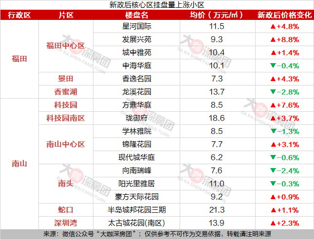 之前推文里我们整理了新政一周后,深圳各片区最新挂牌价:
