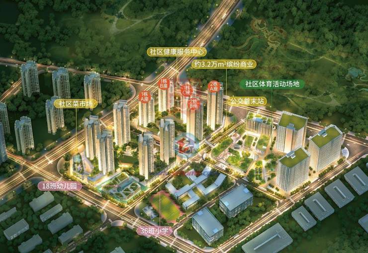 其中包括约3.2万㎡缤纷商业;约2万㎡公建配套,涵盖社康、文化室等;约6000㎡公交首末站,规划接驳地铁、云巴等轨道交通。