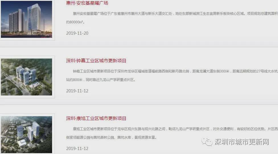 在城市更新领域也卓有成就,比如大浪星曜广场、安弘基天曜广场(原是威华工业区城市更新单元项目)、观澜钟嘉工业区城市更新项目、康旭工业区城市更新项目等。