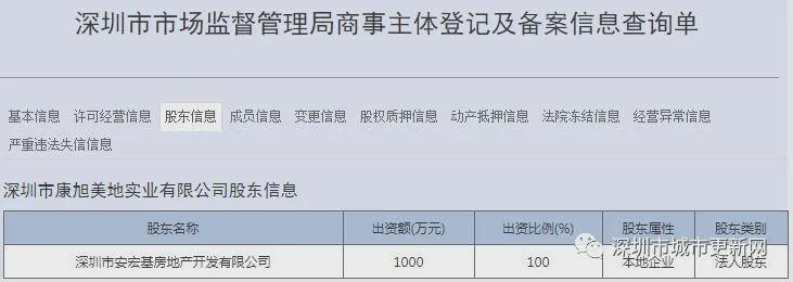 项目申报主体为深圳市康旭美地实业有限公司,根据工商信息查询可知,该公司为安宏基地产的全资子公司。