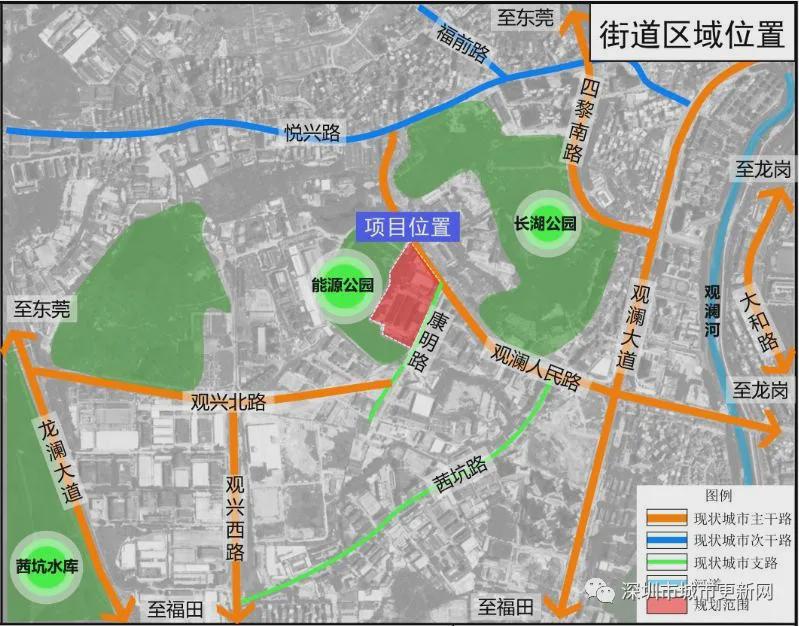 项目位于龙华区福城街道观澜人民路与康明路交汇处西侧,拟拆除范围约2.9万㎡,拟更新方向为普通工业功能。