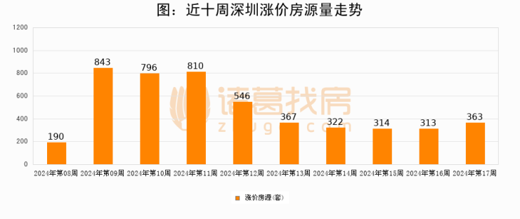 三、本周涨价房源363套,较上周上涨16%