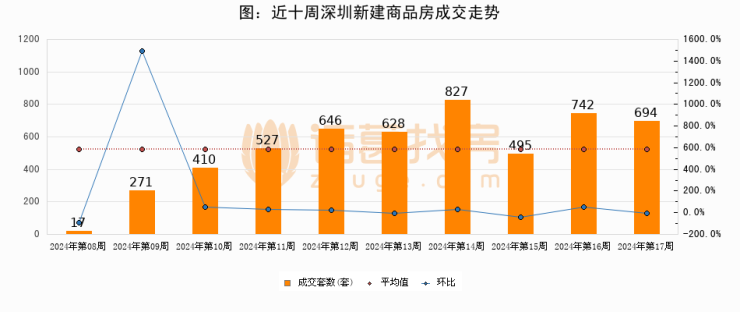 【深圳成交周报】第16周新房成交694套,二手房1250套,涨价房源363套