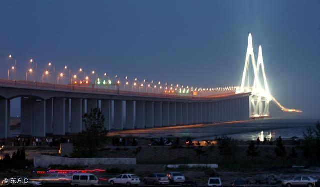 4、青岛海湾大桥,36.48公里 位于山东省青岛市,是我国自行设计、施工、建造的特大跨海大桥。是青岛市规划的胶州湾东西两岸跨海通道“一路、一桥、一隧”中的“一桥”。大桥全长36.48公里,投资额近100亿,历时4年完工。大桥于2011年6月30日全线通车。车辆通行费标准为小汽车每车次50元,40座以上大型客车收费每车次110元。(图片来自东方IC)