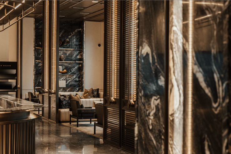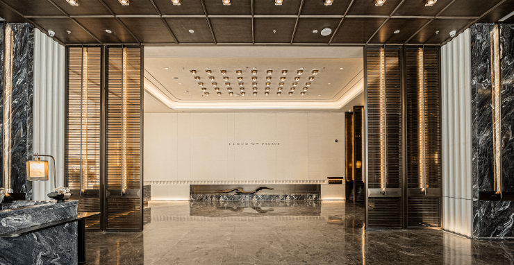产品力的高度兑现是龙湖的核心竞争力之一,龙湖星玺·青云阙打造的约50米宽恢弘气派的门庭,放眼整个龙岗都是TOP级的存在;大门两侧更是镶嵌着超5米高的意大紫山水奢石景墙,抬头可见的高定奢华龙鳞天幕,每一处的细节呈现,不仅成为城市界面中的显赫标识,更是在给予业主极致奢华的归家体验。