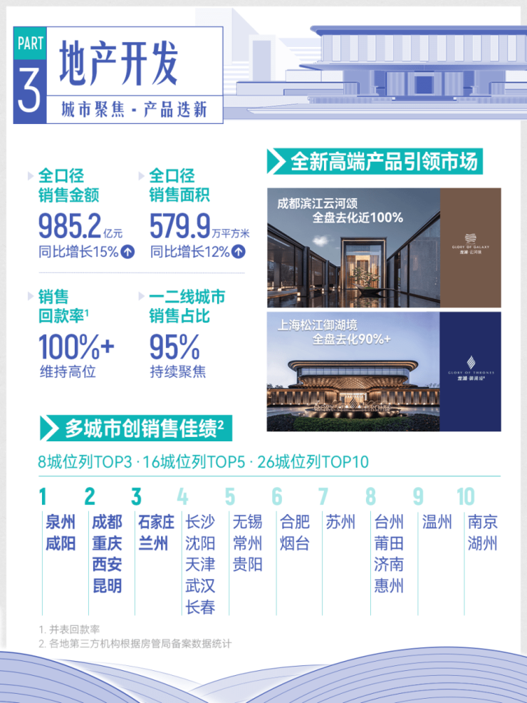 龙湖集团,《财富》世界500强企业,中国房地产开发企业综合实力10强,连续7年三道红线全“绿档”企业。这些实力通过凝聚成的数据就是:2023年上半年,龙湖累计销售额985.2亿元,同比增长14.8%;如期交付约6.2万套品质住宅,其中约20%的项目实现提前一个月以上。