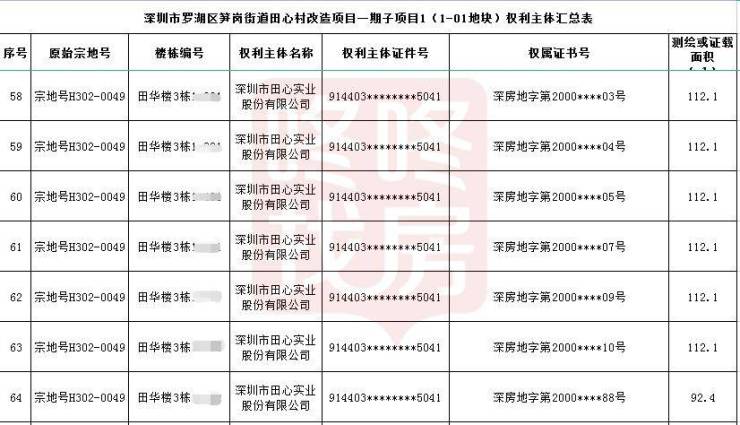 经查,根据华润田心置地有限公司提供的相关材料,罗湖区田心村改造项目一期子项目1(1-01地块)拆除用地范围内共涉及4栋建筑物(总测绘建筑面积9700.43平方米)对应权利主体57户,均与华润田心置地有限公司签订搬迁补偿安置协议;所有权利主体已将房地产的相关权属转移到华润田心置地有限公司,形成单一主体。