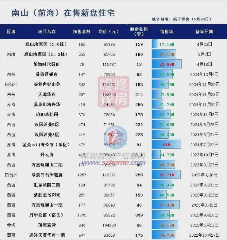 目前,南山片区剩下的大部分房子都是2022-2024年入市的项目;