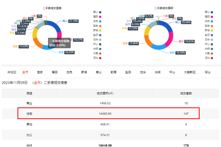 11月9日深圳新房住宅网签111套 二手房住宅网签147套