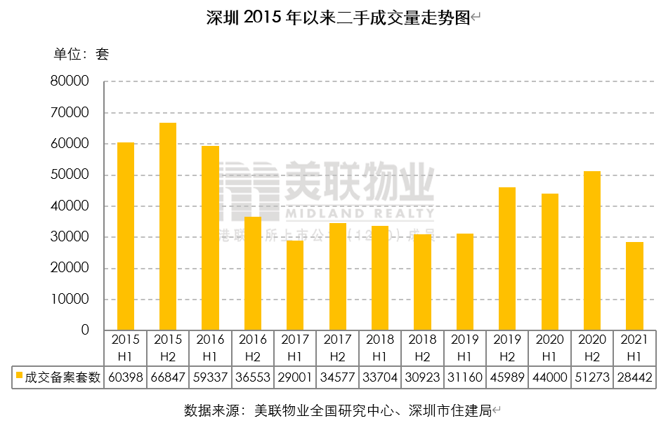上半年,深圳新房还不错,二手房“惨淡”。上半年新房成交2.6万套,比2020年增加56%,比2019年增加48%(这个背后有门道,时滞什么的就不讲了,新房成交量受供应影响大,下面再说)。