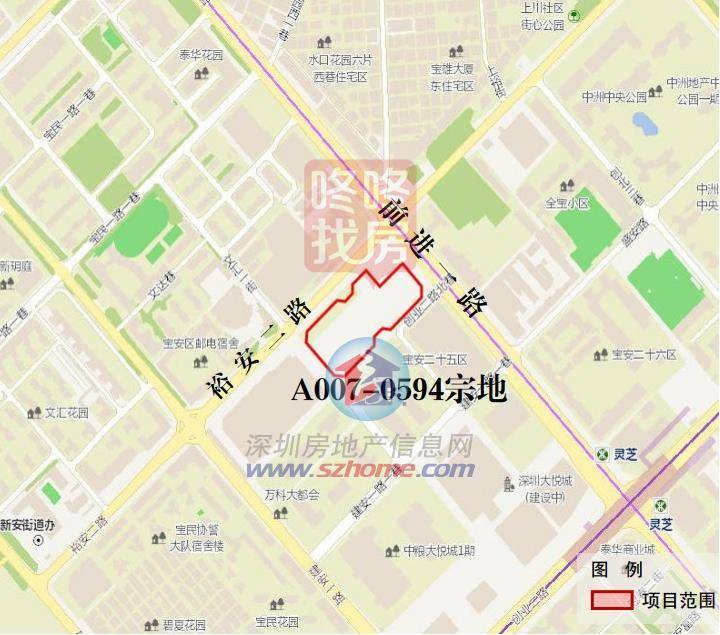 珺悦名都为宝城25区及新安25区城市更新项目一期C项目,位于宝安区新安街道前进一路与裕安二路交汇处南侧,分别由A007-0585、A007-0586宗地组成。