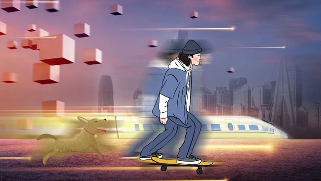 【新视觉形象】机器人“新仔”在轨道上仰望着城市和天空,象征着社会中拼搏的年轻人——对都市的繁华和机遇充满向往和期待,更渴望能在城市中觅得一处归所。