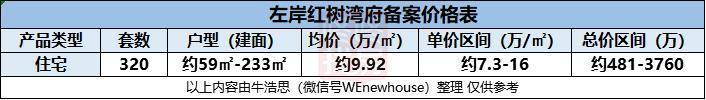 住宅建面约59-233㎡,均价约9.92万/㎡,单价区间约7.3-16万/㎡,总价区间约481-3760万/套。